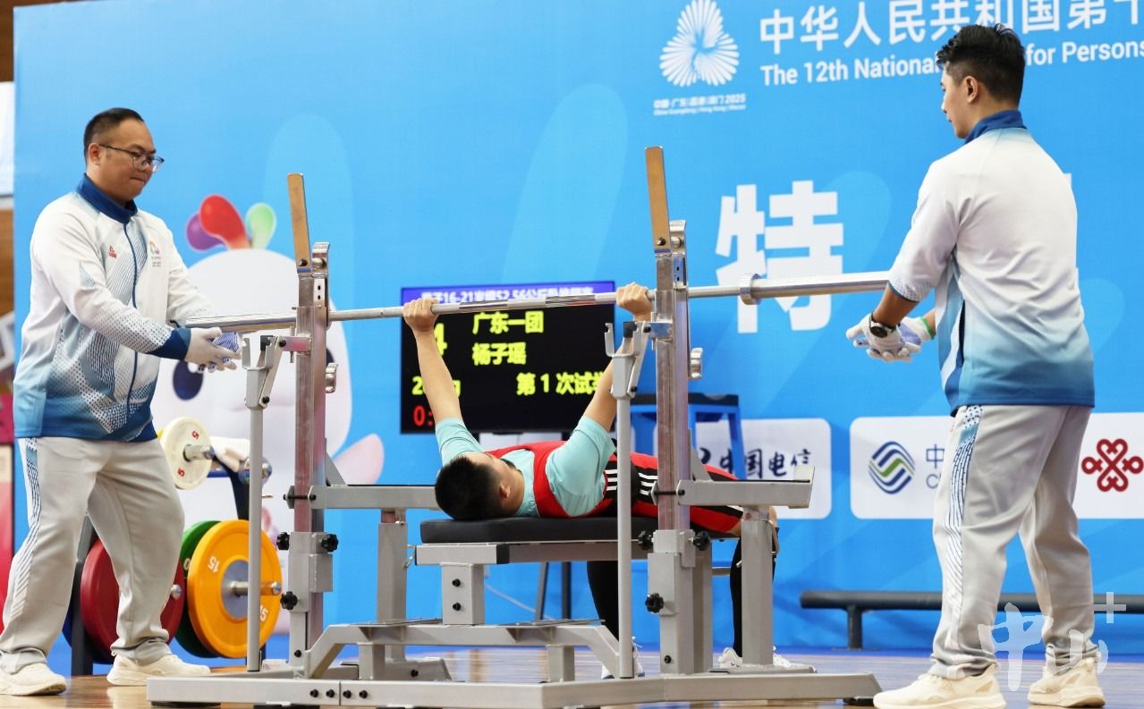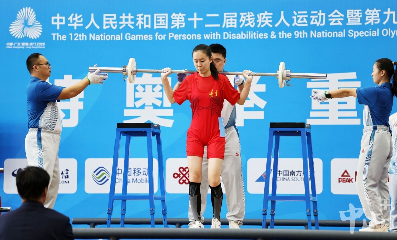 在無障礙觀賽區(qū)內(nèi),觀眾梁偉枝看著比賽出了神,思緒一下回到了當(dāng)年。作為一名殘疾人舉重運動員,他也曾代表廣東參加全國比賽?!拔沂畮讱q時開始接觸舉重,對我的成長受益匪淺。”在他看來,運動帶來的改變是全方位的:“身體變得更健康結(jié)實,心態(tài)也愈發(fā)開朗。外出比賽不僅讓我見識了更廣闊的世界,開闊了眼界,還結(jié)識了許多志同道合的朋友?!笨粗悎錾掀床哪贻p一輩,梁偉枝感觸頗深,他真誠祝愿后輩們能賽出優(yōu)異成績。