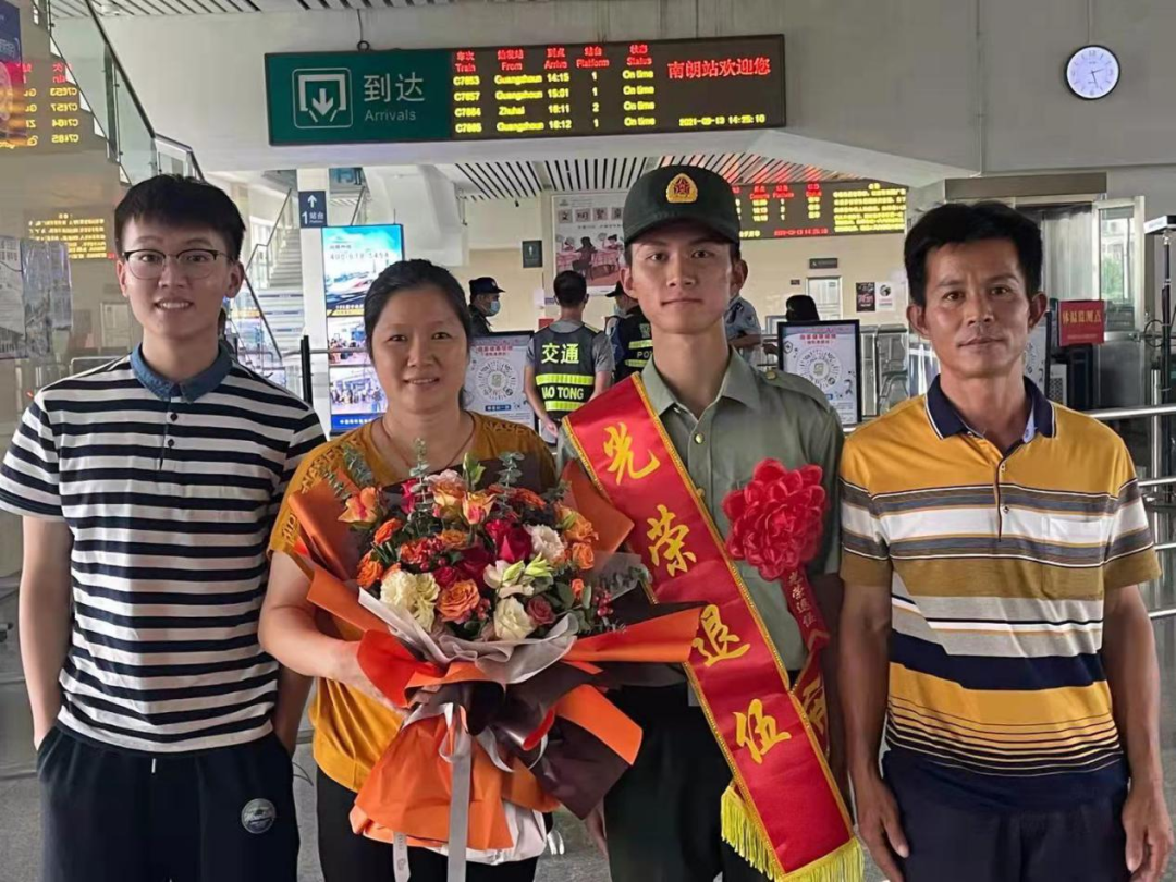 “去時(shí)鑼鼓喧天,歸來(lái)夾道歡迎。” 九月,正是退役軍人 從祖國(guó)各座軍營(yíng) 返回家鄉(xiāng)的退役季 為營(yíng)造“一次參軍、一生光榮”的濃厚氛圍 讓退役軍人感受到家鄉(xiāng)人民的熱情和關(guān)懷 激發(fā)老兵退伍不褪色 返鄉(xiāng)建新功的壯志熱情 9月13日下午,五桂山街道2021年首位退役軍人曾世紀(jì)光榮退役返鄉(xiāng)。街道退役軍人服務(wù)中心負(fù)責(zé)人、社區(qū)“兩委”干部、工作人員以及曾世紀(jì)的父母早早手持鮮花,在城軌南朗站等候迎接世紀(jì)回家。 回想2019入伍歡送大會(huì)時(shí)曾世紀(jì)代表五桂山即將入伍的新兵作表態(tài)發(fā)言,那年,他主動(dòng)請(qǐng)纓,到艱苦邊遠(yuǎn)地區(qū)服役?!皡④姴粌H是個(gè)人的榮耀,也是家人的榮耀,更是鄉(xiāng)親們的榮耀。到了部隊(duì)后我會(huì)堅(jiān)決服從命令,聽從指揮,刻苦訓(xùn)練,勤學(xué)本領(lǐng),絕不辜負(fù)家鄉(xiāng)人民的期望!”