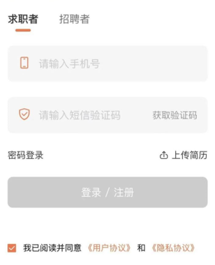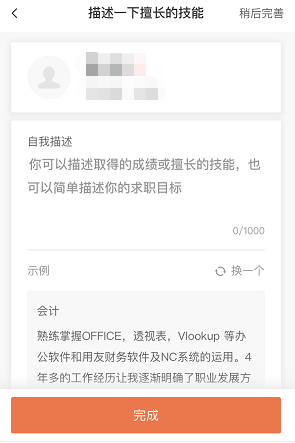 2、注冊賬號(hào) 未注冊登陸的求職者將自動(dòng)跳轉(zhuǎn)到注冊頁面,完善相關(guān)信息后點(diǎn)擊【完成】按鈕完成注冊流程。