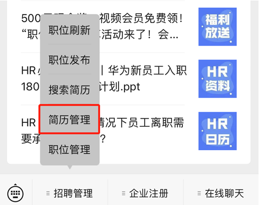 ▲發(fā)布職位流程 3、管理招聘 關(guān)注公眾號(hào)【國際人才網(wǎng)企業(yè)版】,在【招聘管理】菜單欄找到【簡歷管理】,即可查看主動(dòng)應(yīng)聘的求職者,并可發(fā)起溝通或邀約面試。