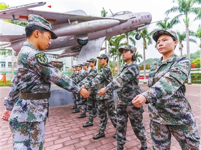 “向右看齊!向前看!現(xiàn)在教你們軍人隊(duì)列動(dòng)作中的脫帽戴帽要領(lǐng)……”3月21日下午,在中山市國(guó)防教育基地訓(xùn)練場(chǎng)上,一支七人訓(xùn)練小隊(duì)顯得格外特別,她們是今年上半年應(yīng)征入伍的中山女兵:梁晶、馮妙瑩、藍(lán)宇瑩、陳琬琪、溫黎嘉茵、劉燕彤、蘇汶詩(shī)。 她們都是00后女大學(xué)生,身著迷彩服,精神抖擻地在教官羅偉進(jìn)的帶領(lǐng)下有序而緊張地開展隊(duì)列訓(xùn)練?!捌叨浣鸹ā鼻酀赡鄣哪樕蠈憹M了對(duì)軍旅生活的向往和期待。她們將通過(guò)幾天的役前教育訓(xùn)練,邁出軍旅生活第一步。 ■五次報(bào)名應(yīng)征終圓夢(mèng) 七朵金花中,沙溪鎮(zhèn)占據(jù)兩席名額,她們分別是藍(lán)宇瑩和劉燕彤。沙溪鎮(zhèn)武裝部工作人員劉偉立說(shuō):“從歷年來(lái)看,這次是我們鎮(zhèn)出女兵人數(shù)最多的一次。其中,龍聚環(huán)村民小組更是出兵大戶,幾乎每年都有男女兵從這里出?!?/p> 身高1.7米的劉燕彤就來(lái)自沙溪鎮(zhèn)樂(lè)群村(龍聚環(huán)村民小組),就讀于廣東海洋大學(xué),是一名大二學(xué)生?!拔矣洃浿忻看未謇镉腥水?dāng)兵入伍,都會(huì)舉行隆重的送兵儀式,整個(gè)村子鑼鼓喧天鞭炮齊鳴,還有舞獅表演助陣,好熱鬧。很小的時(shí)候我就覺得當(dāng)兵很威風(fēng)很光榮,在我心里也就埋下了要當(dāng)兵的種子?!眲⒀嗤f(shuō):“我對(duì)部隊(duì)生活充滿了期待,進(jìn)入部隊(duì)后我希望自己能考上軍校留在部隊(duì)長(zhǎng)期發(fā)展?!?/p> 藍(lán)宇瑩來(lái)自沙溪鎮(zhèn)匯源社區(qū),就讀于廣東技術(shù)師范大學(xué),是一名大三學(xué)生。她曾在網(wǎng)上報(bào)名應(yīng)征了5次,可見其參軍入伍決心之大?!拔覐男【秃艹绨蒈娙?,從小學(xué)一直到大學(xué)都是學(xué)校國(guó)旗護(hù)衛(wèi)隊(duì)的隊(duì)員?!彼{(lán)宇瑩表示,幸運(yùn)的是今年3月份,自己終于圓夢(mèng)軍營(yíng)即將前往某戰(zhàn)區(qū)海軍服役。 藍(lán)宇瑩的母親錢梅香表示:“我非常支持女兒的決定,感覺入伍對(duì)女生來(lái)說(shuō)是一種很好的鍛煉。如果有機(jī)會(huì),我還想讓小兒子上大學(xué)后也進(jìn)入部隊(duì)參軍報(bào)國(guó),向姐姐學(xué)習(xí)?!?/p> ■對(duì)軍營(yíng)生活充滿期待 七朵金花中,來(lái)自南朗街道下沙村的馮妙瑩就讀于廣東醫(yī)科大學(xué),今年6月份大學(xué)畢業(yè)?!拔覀冏黾议L(zhǎng)的就是希望她入伍后好好干,加油努力?!瘪T妙瑩的父親不善言辭,非常支持女兒的從軍決定,“我年輕時(shí)也想當(dāng)兵,但身體條件不合格,錯(cuò)失了機(jī)會(huì)。” “我大一就加入了學(xué)校國(guó)旗護(hù)衛(wèi)隊(duì),通過(guò)日復(fù)一日的隊(duì)列訓(xùn)練,開始向往激情如火的軍營(yíng)生活。”馮妙瑩告訴記者,“對(duì)即將到來(lái)的部隊(duì)生活,既期待又有點(diǎn)擔(dān)心。擔(dān)心去到一個(gè)陌生的環(huán)境會(huì)不適應(yīng),但既然選擇了這條路,我一定會(huì)克服困難,堅(jiān)持下去,爭(zhēng)取留在部隊(duì)發(fā)展,早日成為一名優(yōu)秀軍人。” 來(lái)自民眾街道的梁晶就讀于南華大學(xué),今年6月即將大學(xué)畢業(yè)。她剛進(jìn)入大一就提交了入黨申請(qǐng)書,2022年正式成為一名共產(chǎn)黨員。梁晶說(shuō):“2021年河南特大暴雨期間,通過(guò)新聞媒體看到中國(guó)軍人逆流而上,連夜出征轉(zhuǎn)移群眾的場(chǎng)景讓我深受感動(dòng)。那時(shí)起,我就萌生了參軍的想法?!毙疫\(yùn)的是,她今年終于圓夢(mèng)軍營(yíng),她表示:“面對(duì)未知的軍營(yíng)生活,我已經(jīng)作好了心理準(zhǔn)備。進(jìn)入部隊(duì)后,我一定會(huì)好好適應(yīng),有信心能在部隊(duì)干好?!?/p> 臨近傍晚,一天的訓(xùn)練就要結(jié)束了,中山市國(guó)防教育基地門口上方一條寫著“保家衛(wèi)國(guó)終不悔,綠色軍營(yíng)獻(xiàn)青春”的紅色橫幅迎風(fēng)招展,不遠(yuǎn)處的軍營(yíng)生活正等著中山這“七朵金花”的到來(lái),她們也在憧憬著…… 記者 張倩 ◆編輯:龍慧◆二審:鄭沛鋒◆三審:周亞平 |