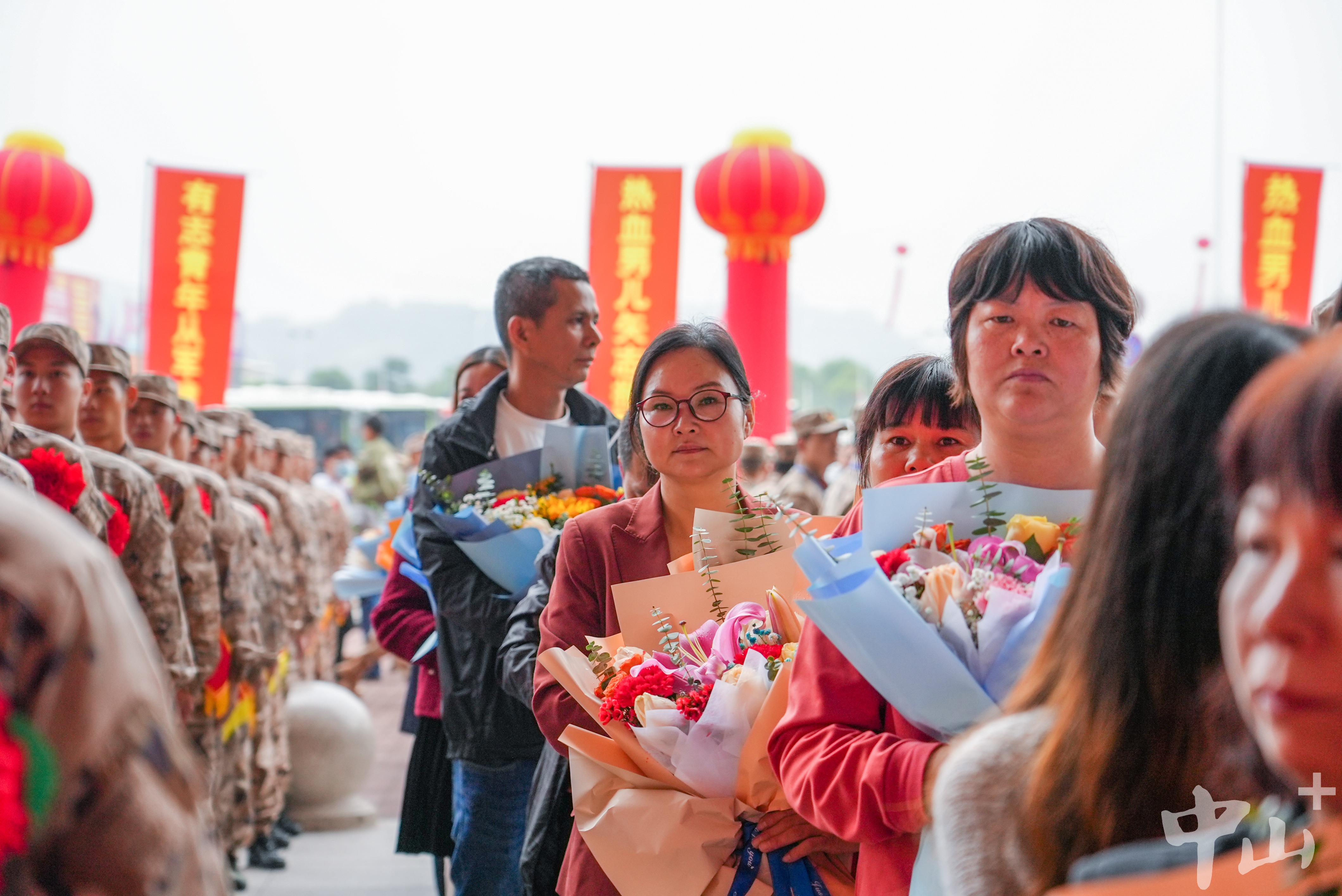 青春獻給國防,熱血報效祖國。 3月16日早上,中山市2024年上半年入伍新兵歡送大會在城軌中山站的進站廣場舉行。300多名適齡青年經(jīng)過嚴格的體檢和政考,即將邁入軍營。 3月16日早上,中山市2024年上半年入伍新兵歡送大會在城軌中山站的進站廣場舉行。記者 易承樂 攝