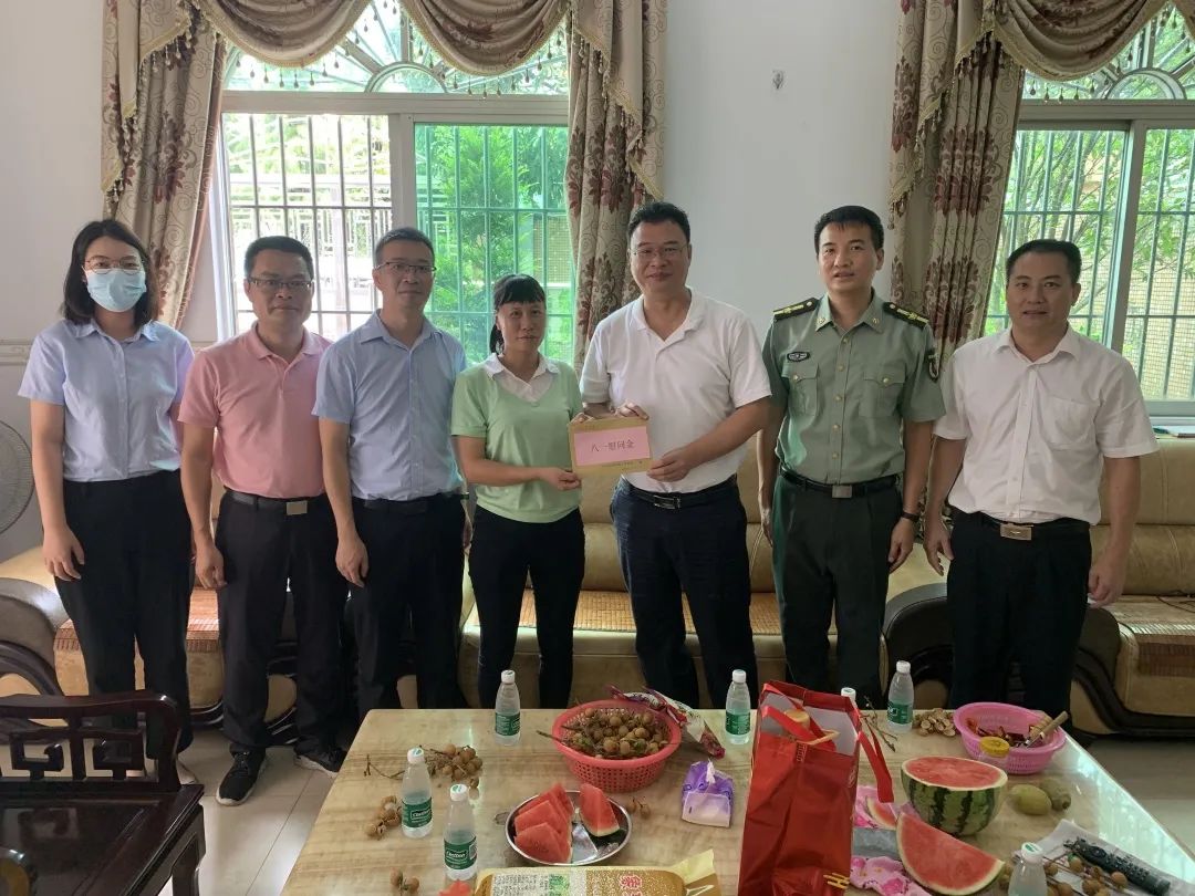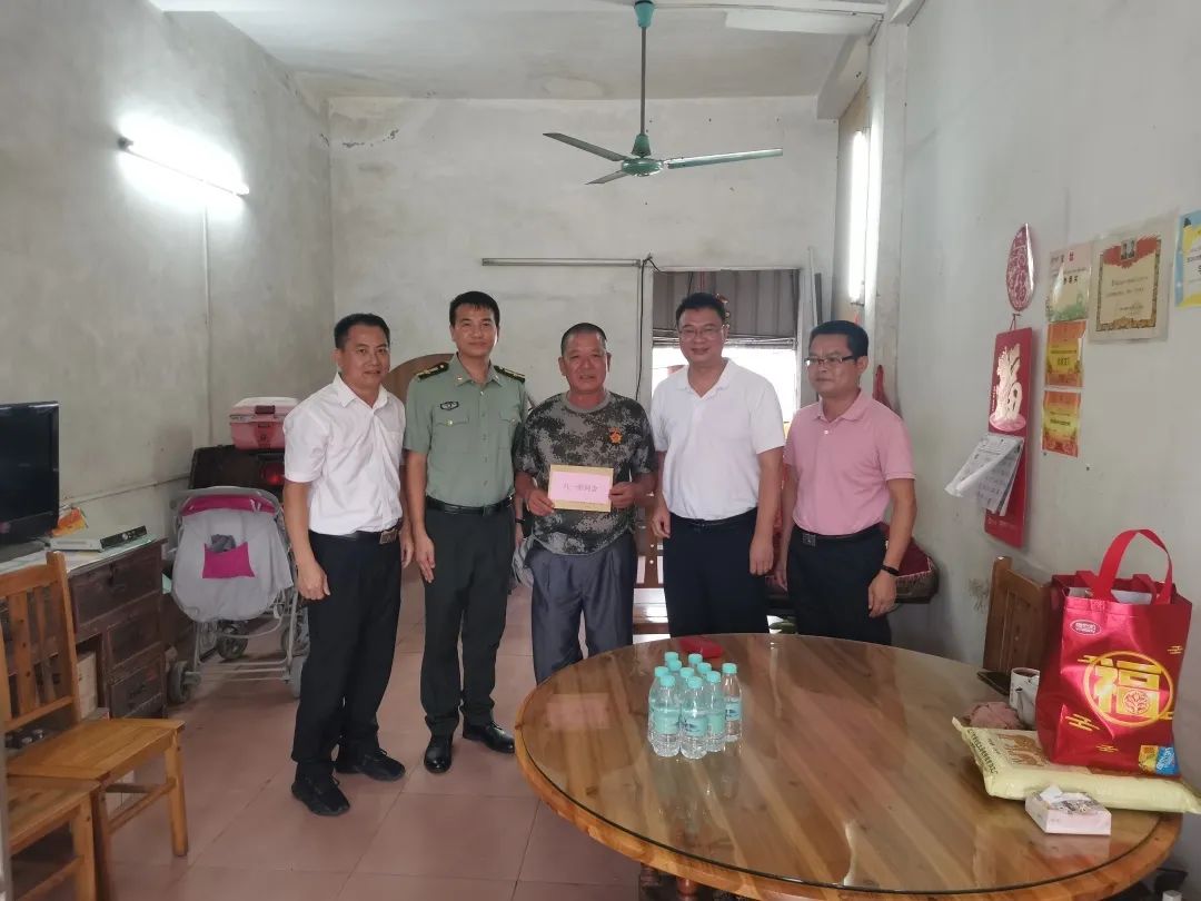 在中國人民解放軍建立94周年來臨之際,為進一步弘揚“擁軍優(yōu)屬、擁政愛民”的光榮傳統(tǒng),關(guān)心關(guān)愛軍人軍屬,7月30日上午,阜沙鎮(zhèn)黨委副書記、鎮(zhèn)長李健華帶領(lǐng)公共服務(wù)辦、武裝部、退役軍人服務(wù)中心到現(xiàn)役、退役軍人家中開展慰問活動。