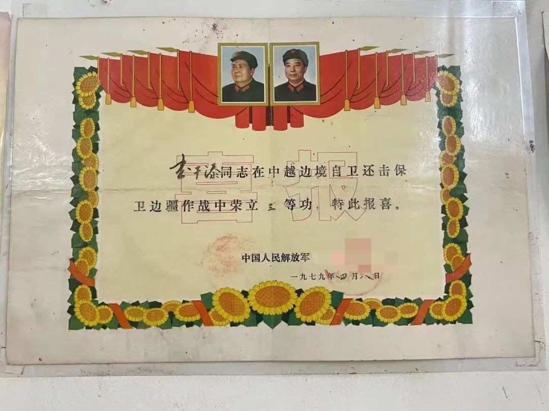 李干添對慰問組的到來表示感謝,并拿出參戰(zhàn)時期立功的勛章和喜報共同回憶戰(zhàn)爭年代。