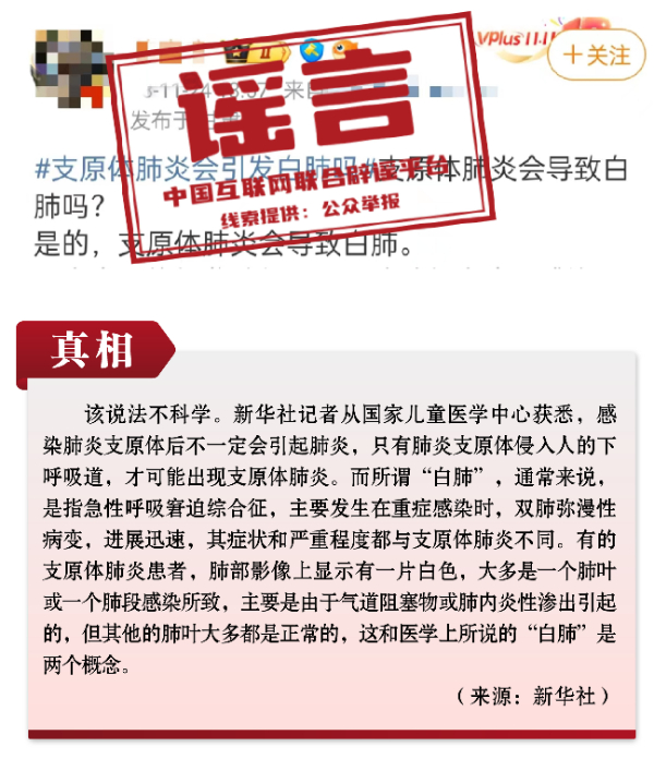 謠言1:感染肺炎支原體一定會得肺炎?會出現(xiàn)“白肺”?