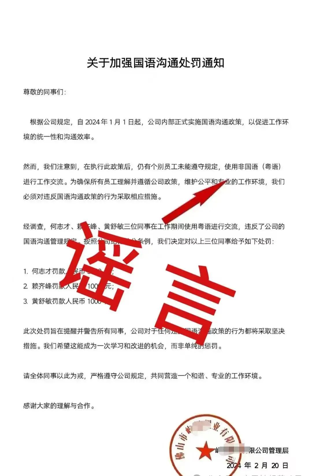 2024年2月21日,網(wǎng)傳“廣東佛山一公司有員工因講粵語被罰款五千元”的消息,引發(fā)網(wǎng)友熱議。接報(bào)后,佛山警方迅速核查相關(guān)情況,依法傳喚發(fā)帖人到公安機(jī)關(guān)接受調(diào)查。