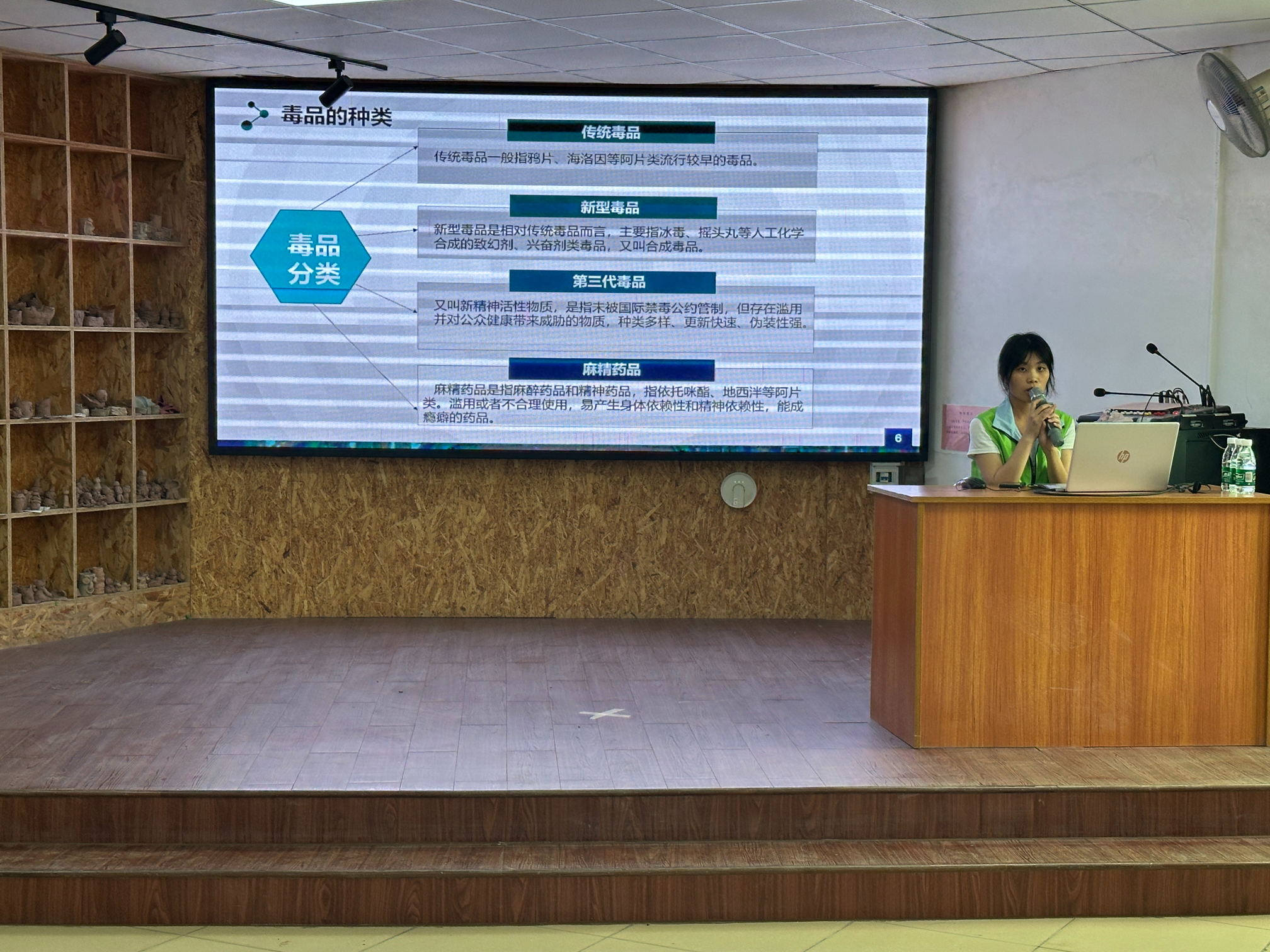 活動(dòng)現(xiàn)場(chǎng),禁毒社工通過發(fā)放宣傳資料、講解禁毒知識(shí)、介紹新型毒品類型等方式,帶學(xué)生們深入了解到毒品的種類以及有關(guān)知識(shí)點(diǎn)。用通俗易懂的語言,結(jié)合真實(shí)案例,提醒同學(xué)們不要因?yàn)楹闷嫘膶?dǎo)致誤入歧途,學(xué)會(huì)抵制毒品誘惑。同時(shí),禁毒社工倡導(dǎo)學(xué)生們要時(shí)刻牢記禁毒理念,學(xué)會(huì)真愛生命。在互動(dòng)環(huán)節(jié)上,學(xué)生們積極參與回答問題,現(xiàn)場(chǎng)氣氛熱烈非凡,學(xué)生們更進(jìn)一步了解到毒品知識(shí)。最后,社工帶領(lǐng)大家一起宣誓禁毒誓詞,為他們的青春之路筑牢禁毒防線。