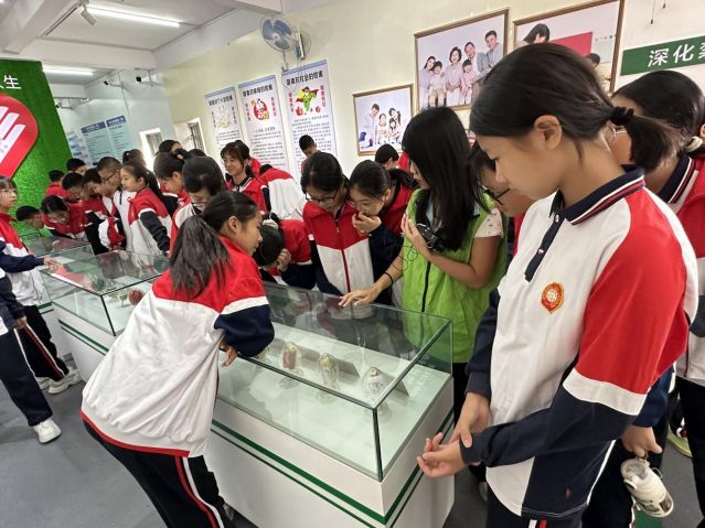 活動現(xiàn)場,禁毒社工帶領(lǐng)學生們進入禁毒教育基地,通過通俗易懂的語言,為學生們講解了中國禁毒史、毒品的種類、毒品對人器官的危害等知識?;顒又?,部分學生對毒品仿真品表現(xiàn)出濃厚興趣,他們相互觀察、深入交流新型毒品的偽裝包裝樣式與特征。通過這些互動環(huán)節(jié),有效激發(fā)了學生們學習禁毒知識的熱情,促使他們樹立起“健康認知,綠色無毒”的正確理念。
